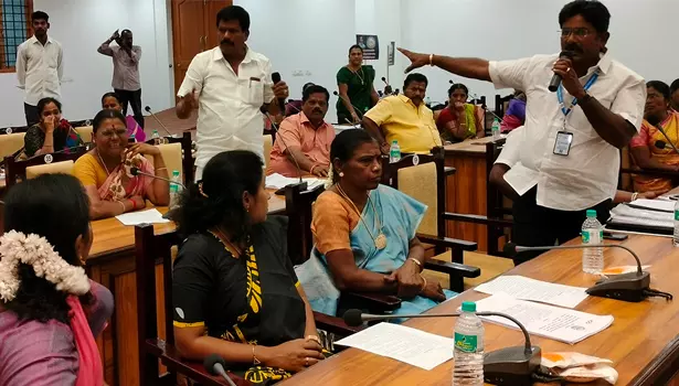 கூட்டத்தில் தி.மு.க-அ.தி.மு.க. கவுன்சிலர்கள் இடையே காரசார விவாதம் நடந்தது.