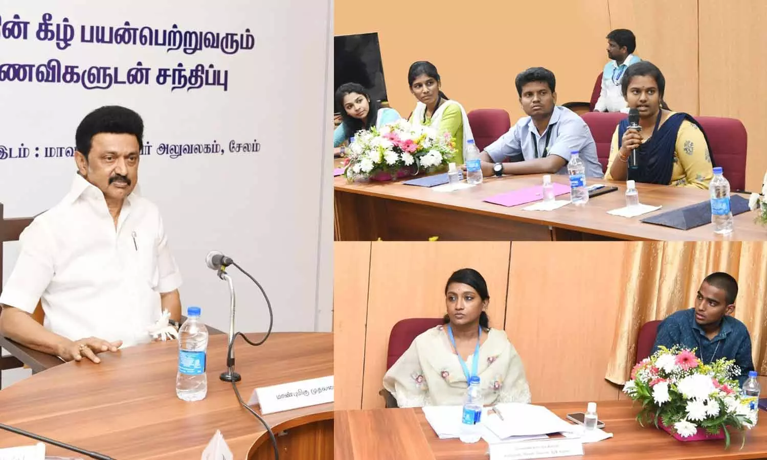 தொடர்ந்து சேலம் மாவட்ட கலெக்டர் அலுவலகத்தில் 4 மாவட்டங்களை சேர்ந்த தொழில் துறை மற்றும் விவசாய சங்க பிரதிநிதிகள், மகளிர் சுய உதவிக்குழுவினர் மற்றும் நான் முதல்வன் திட்டத்தின் கீழ் பயன்பெற்று வரும் கல்லூரி மாணவ-மாணவிகளுடன் முதலமைச்சர் கலந்துரையாடினார்.
