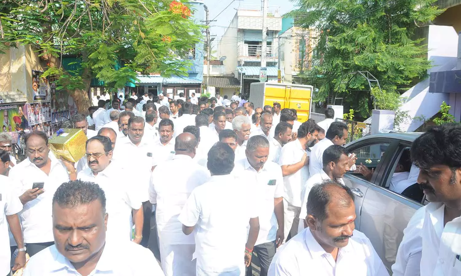 தொடர்ந்து இன்று காலை முதலே எடப்பாடி பழனிசாமி வீட்டிற்கு தமிழகத்தின் பல்வேறு பகுதிகளில் இருந்து கட்சியின் மூத்த நிர்வாகிகள், முன்னாள் அமைச்சர்கள், தொண்டர்கள், திரண்டு வந்து வாழ்த்து தெரிவித்து வருகின்றனர். இதனால் எடப்பாடி பழனிசாமி வீடு அமைந்துள்ள நெடுஞ்சாலை நகர் பகுதியில் அ.தி.மு.க.தொண்டர்கள் கூட்டம் நிரம்பி வழிகிறது.