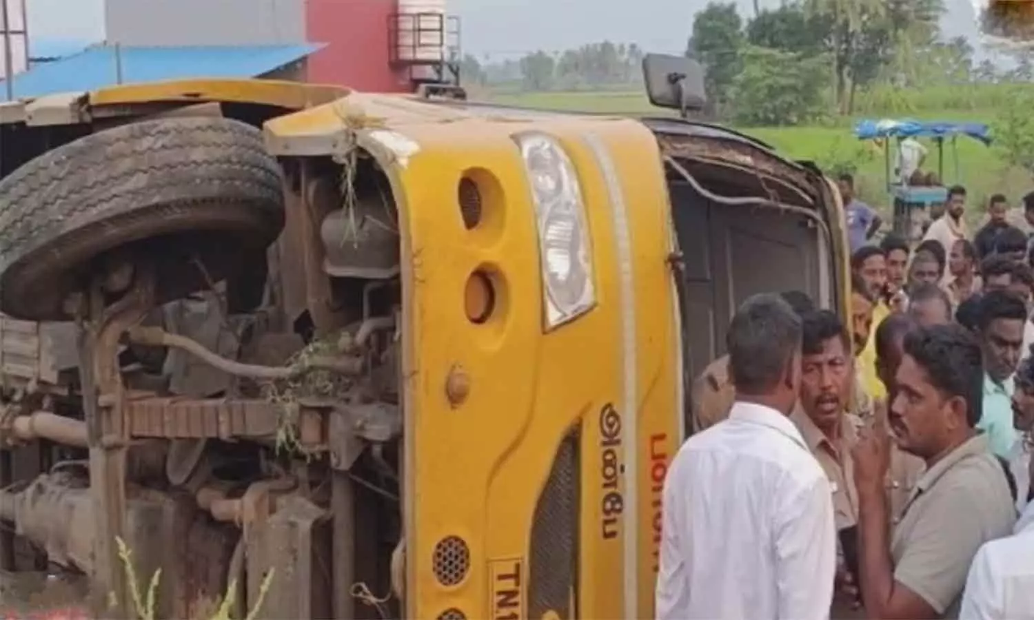 கள்ளக்குறிச்சி அருகே பள்ளி வாகனம் கவிழ்ந்து விபத்து- 30 மாணவர்கள் படுகாயம்