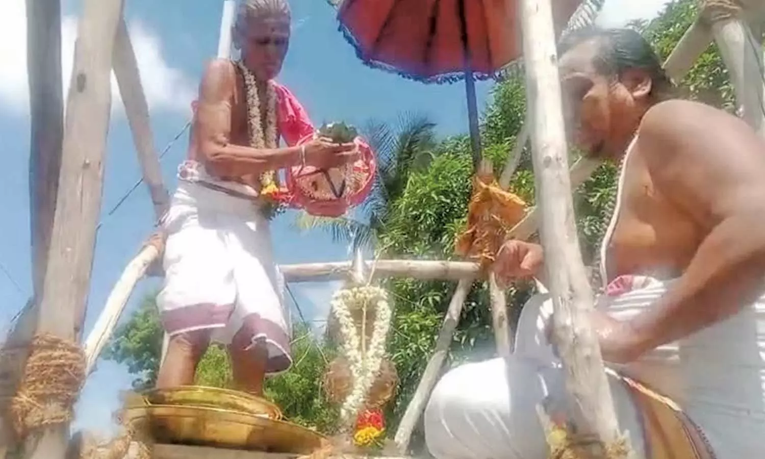 கோபுர கலசத்தில் புனிதநீர் ஊற்றி கும்பாபிஷேகம் நடந்தது.