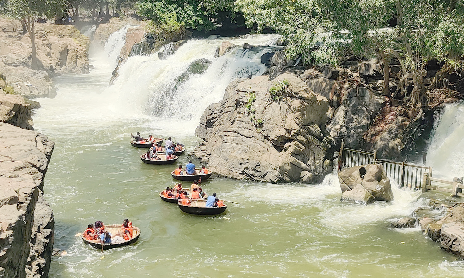தொடர் விடுமுறை என்பதால் ஒகேனக்கல்லில் குவிந்த சுற்றுலா பயணிகள்