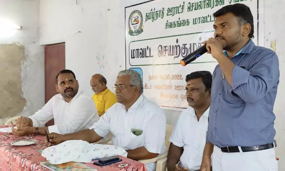 சிவகங்கையில் தமிழ்நாடு ஊாட்சி செயலாளர்கள் மாவட்ட செயற்குழு கூட்டம் நடந்தது. இதில் தமிழ்நாடு ஊராட்சி செயலாளர்கள் சங்கத்தின் மாவட்ட தலைவர் பாக்யராஜ் கலந்து கொண்டு பேசும்போது கூறியதாவது:-