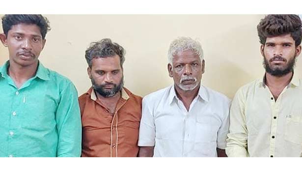 போலீசார் விசாரணை யில் இதனை கடத்திய தாடிக்கொம்பு அருகே உள்ள சுக்காம்பட்டியைச் சேர்ந்த சூரியபிரகாஷ் (வயது 24). உலகம்பட்டியைச் சேர்ந்த சேசுராஜ் (62), என்.பஞ்சம்பட்டியைச் சேர்ந்த ஆறுமுகம் (39), வெயி லடிச்சான்பட்டியைச் சேர்ந்த நல்லபாண்டி (25) என தெரிய வந்தது.