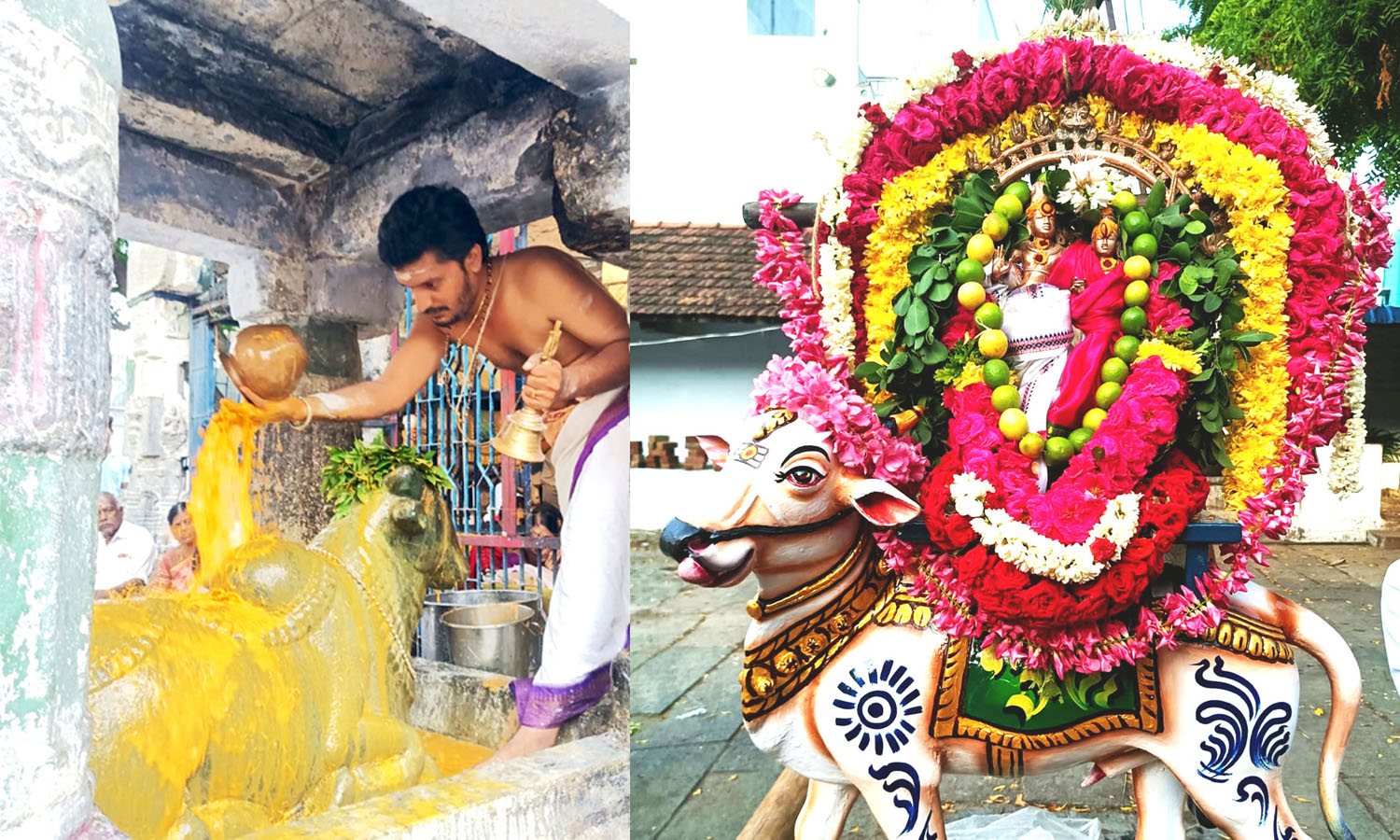இதையொட்டி முதலில் மூலவருக்கு சிறப்பு அபிஷேகம் நடைபெற்றது. அதனைத் தொடர்ந்து நந்திக்கு பல்வேறு வகையான வாசனை திரவியங்கள் மற்றும் பழங்களைக் கொண்டு சிறப்பு அபிஷேகம் மற்றும் ஆரா தனைகள் நடைபெற்றது.
