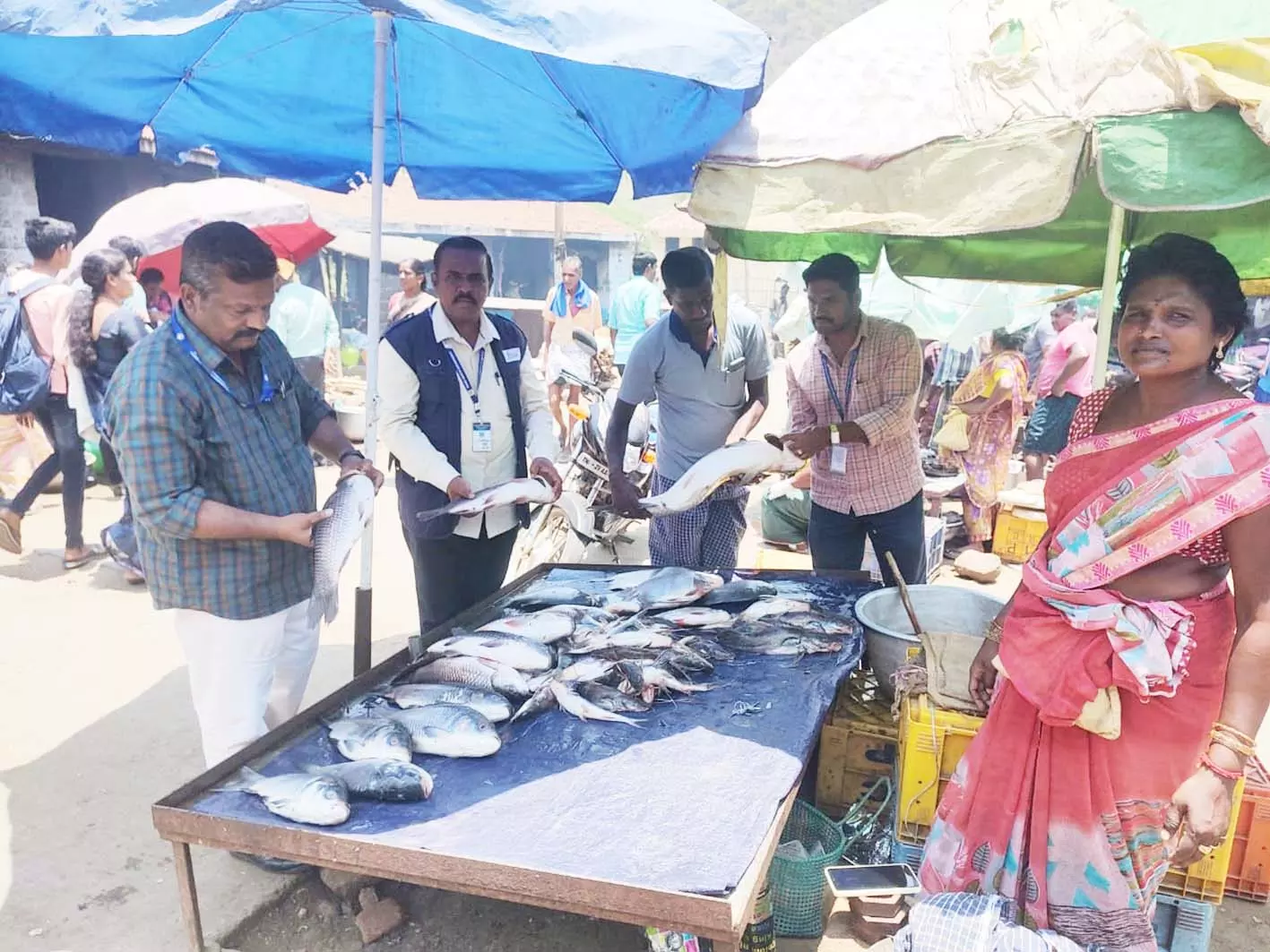- சோதனையில் பல கடைகளில் இருந்து சர்வ சாதாரணமாக தரமற்ற முறையில் அழுகிய நிலையில் இருந்த 300 கிலோ மீன்கள் பிடிக்கப்பட்டது.