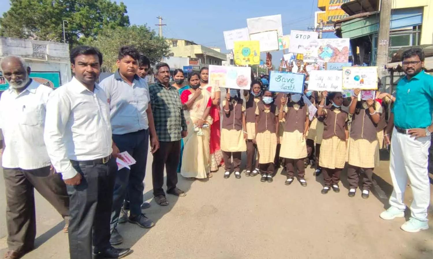 - பிளாஸ்டிக் பொருட்கள் தீங்கு குறித்தும் கையில் பதாகைகளை ஏந்தி சென்றனர்