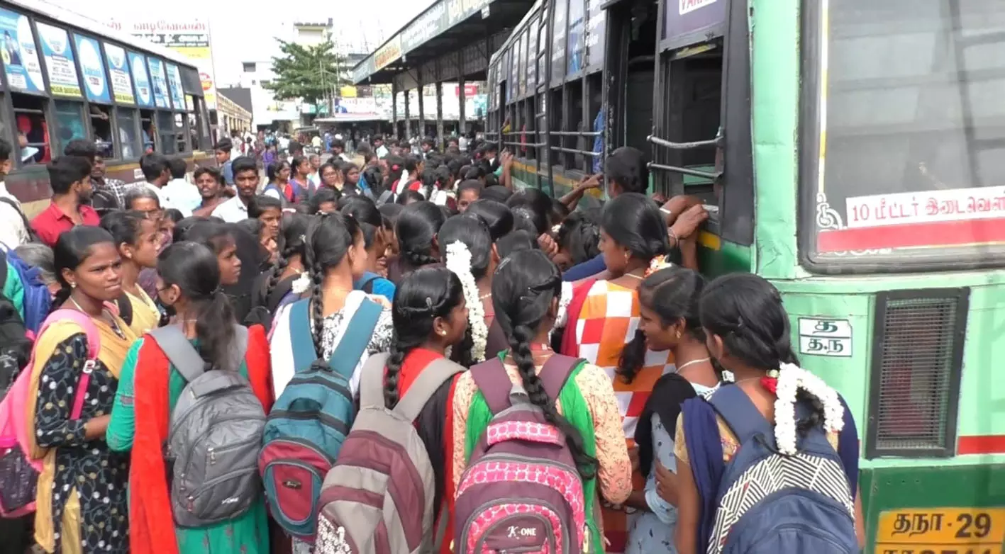 இந்த நிலையில் காலையில் 9 மணி முதல் 9.30 மணி வரை நகரப் பேருந்துகள் குறைவாக இயக்குவதால் மாணவிகள் கல்லூரி நேரத்திற்கு சரியாக செல்ல வேண்டும் என்பதற்காக பேருந்துகளில் உயிரை பணயம் வைத்து முண்டியடித்து ஓடி பேருந்தில் ஏறுகின்றனர். அதேபோல் கல்லூரி முடிந்து மாலை வீட்டிற்கு திரும்பும் போதும் பேருந்துகளை பிடிக்க மணி கணக்கில் காத்திருந்து பேருந்து பயணம் செய்யும் அவல நிலை ஏற்பட்டு உள்ளது.