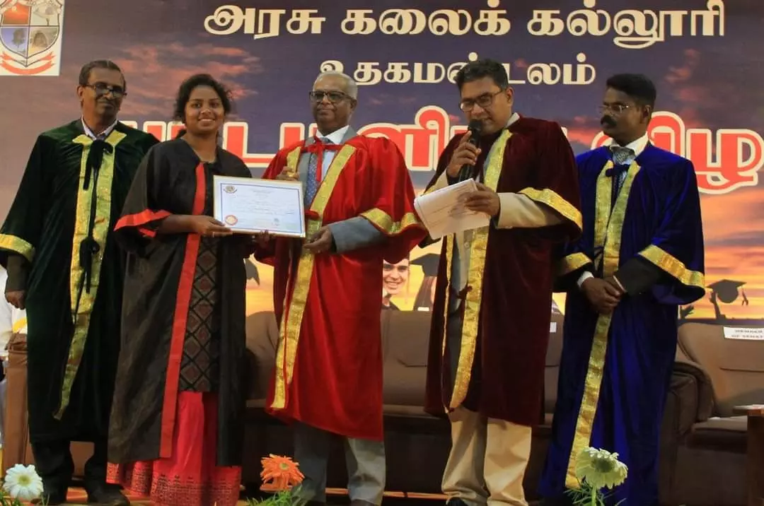 இந்த நிலையில் ஊட்டி அரசு கலைக்கல்லூரியில் 2019, 2020 மற்றும் 2021-ம் ஆண்டுகளில் படித்து இளங்கலை மற்றும் முதுகலை பட்டப்படிப்பு முடித்த மாணவ-மாணவி களுக்கான பட்டமளிப்பு விழா கடந்த 2 நாட்களாக ஊட்டி அரசு கலைக் கல்லூரியில் உள்ள அண்ணா உள்விளையாட்டு அரங்கில் நடந்தது.