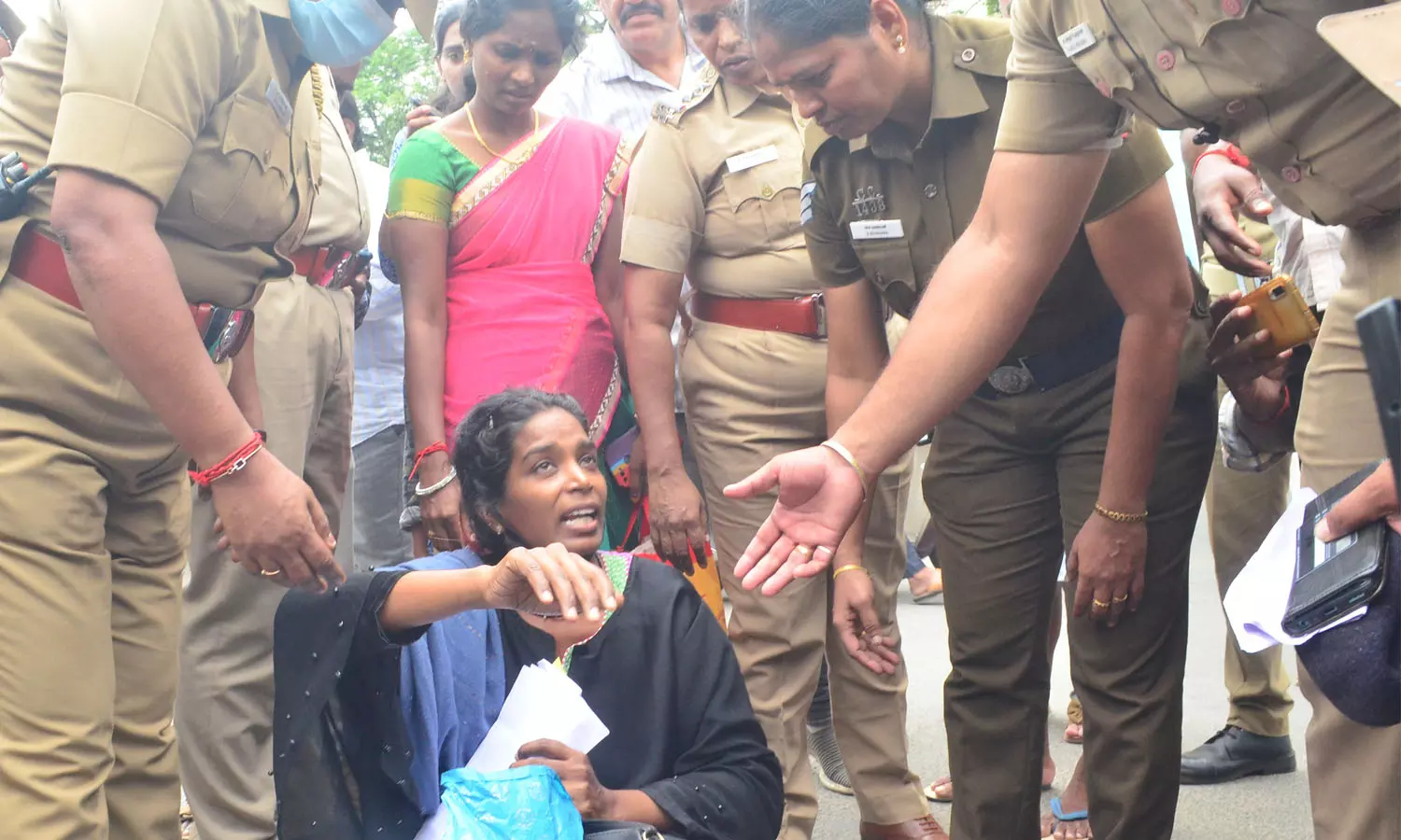 அப்போது அங்கு பாதுகாப்பு பணியில் இருந்த போலீசார் விரைந்து சென்று பெண்ணை அகற்ற முயன்றனர். ஆனால் அவர் வர மறுத்து போராட்டத்தில் ஈடுபட்டார். இதனால் அங்கு பரபரப்பு ஏற்பட்டது.பின்னர் போலீசார் அவரை சமாதானம் செய்து அழைத்து வந்தனர். தொடர்ந்து அவரிடம் விசாரணை நடத்தினர். விசாரணையில், அவர் போலீசாரிடம் கூறியதாவது:-