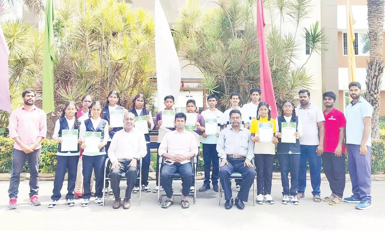 மாணவர்களுக்கு பயிற்சி அளித்த உடற்கல்வி ஆசிரியர்கள் செல்வம், தினேஷ், திருப்பதி, புவனேஷ்வரி ஆகியோர்களை பள்ளி நிர்வாகம் பாரட்டியது.