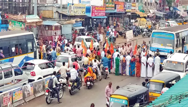 பா.ஜ.க.வினர் சாலை மறியலில் ஈடுபட்டபோது எடுத்த படம்.