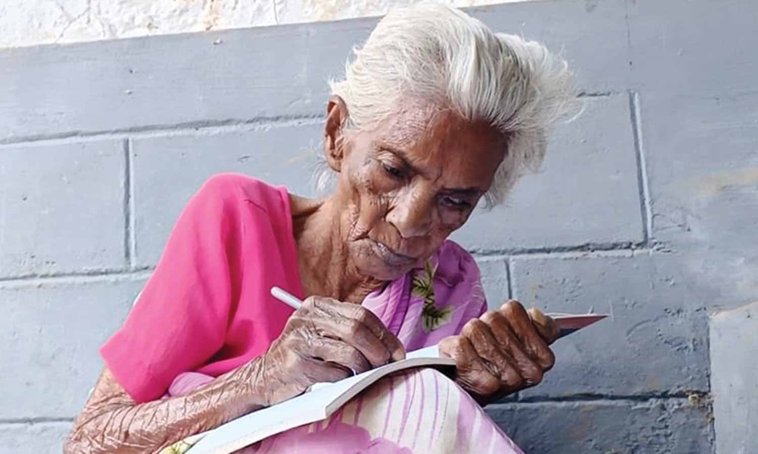 அதன் பிறகு படிப்பை பற்றி சிந்திக்க நேரமில்லை. இருந்த போதும் எனது குழந்தைகள், பேரன், பேத்திகள் அனைவரும் பள்ளி, கல்லூரிக்கு சென்று பயின்றனர். அப்போதுதான் நம்மால் இதுபோல் படிக்க முடியவில்லையே என்ற கவலை இருந்தது. கல்வி கற்காவிட்டாலும் கேள்வி ஞானம் உள்ளது. தற்போது 108 வயது ஆனபோதிலும் எனது வேலைகளை நானே செய்துகொள்கிறேன். கண்ணாடி அணிவது கிடையாது. எனது குழந்தைகள் என்னை நல்ல முறையில் பார்த்து கொள்கிறார்கள். படிப்பறிவு இல்லையே என்ற குறையை போக்க கேரள அரசு அறிவித்த சம்பூர்ணா சாஸ்த்ரா திட்டம் எனக்கு உதவியாக இருந்தது.