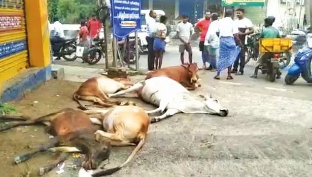 தாம்பரம் அருகே லாரி மோதி 4 மாடு பலி