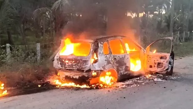 இதனை பார்த்த தமிழரசன் உடனடியாக காரை சாலை ஓரமாக நிறுத்திவிட்டு கீழே இறங்கி தீயை அணைக்கும் முயற்சியில் இறங்கினார். அதற்குள் கார் வேகமாக தீப்பிடித்துக்கொண்டது.