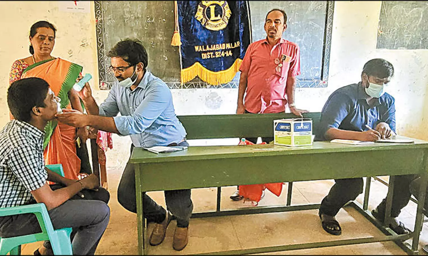 அரசு பள்ளிகளில் பயிலும் மாணவர்களுக்கு உடல் நலம் குறித்த பரிசோதனைகளை மேற்கொள்ள தமிழக அரசு அறிவுறுத்தி உள்ளது. அதன்படி வாலாஜாபாத் அறிஞர் அண்ணா அரசு மேல்நிலை பள்ளியில் பயிலும் 500 மாணவர்களுக்கு வாலாஜாபாத்தில் செயல்படும் அரிமா சங்கம் மற்றும் அஞ்சலாட்சி பல் ஆஸ்பத்திரி இணைந்து பல் பரிசோதனை முகாமை நடத்தியது. முகாமில் பல் மருத்துவ சிகிச்சை சிறப்பு டாக்டர் ஆச்சியப்பன் தலைமையில் பல் மருத்துவர்கள் கலந்துகொண்டு பள்ளியில் பயிலும் மாணவர்களுக்கு பற்களை பரிசோதனை செய்து தேவைப்படுபவர்களுக்கு மாத்திரைகள், பற்பசை போன்றவற்றை இலவசமாக வழங்கி சிகிச்சை அளித்தார்கள்.