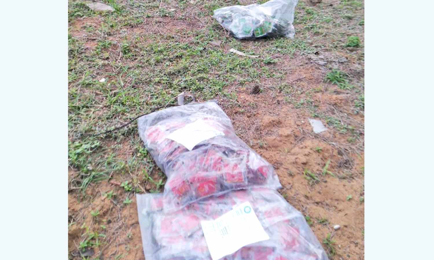 காலாவதியான கடலை மிட்டாய், எள்ளு மிட்டாய் பாக்கெட்டுகள் அதிக அளவில் வீசப்பட்டு இருந்தது.