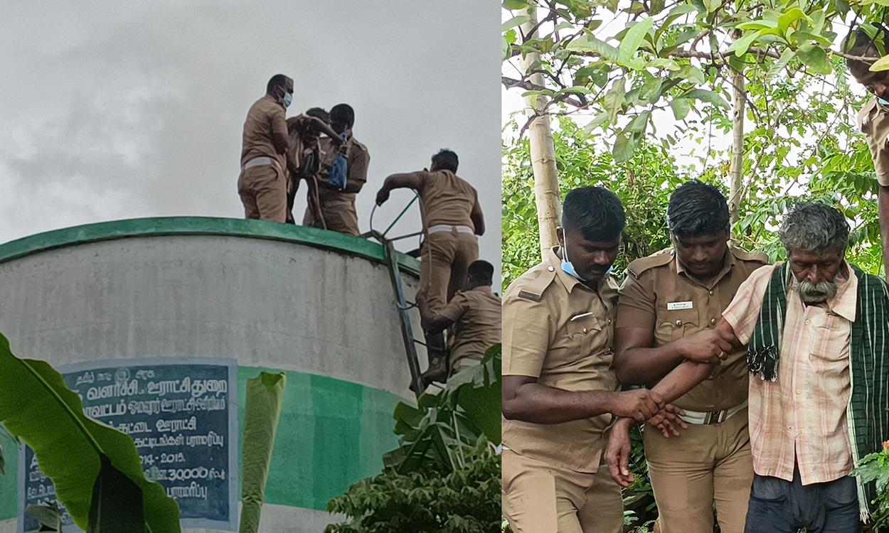 ஓமலூர் அருகே குடிநீர் தொட்டி மீது ஏறி தற்கொலை மிரட்டல் விடுத்த முதியவர்
