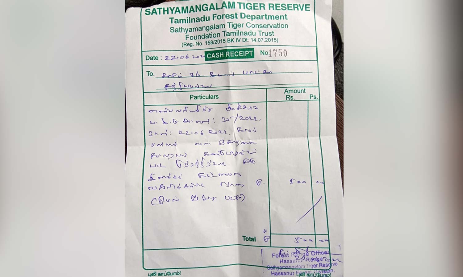 இந்நிலையில் சம்பவத்தன்று மாலை கோவையில் இருந்து மைசூருக்கு அட்டை பாரம் ஏற்றி சென்ற லாரி சரியான நேரத்தில் காரப்பள்ளம் சோதனைச்சாவடி கடக்கவில்லை என வனத்துறையினர் ரூ.500 அபராதம் விதித்துள்ளனர்.