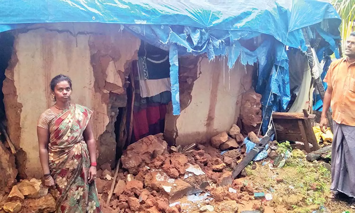 இடிந்து விழும் சூழலில் வீடு உள்ளதால் மாற்று இடத்தில் தங்க அறிவுறுத்தினர்.