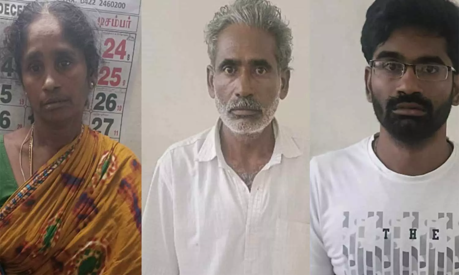 இந்நிலையில் கோபி அடுத்த ஒத்தக்குதிரை பகுதிகளில் பதுங்கி இருந்த பூரணியின் கணவர் மதன்குமார், மாமனார் யுவராஜ், மாமியார் பூங்கொடி ஆகியோரை கவுந்தப்பாடி போலீசார் கைது செய்தனர். பின்னர் அவர்கள் கோபி நீதிமன்றத்தில் ஆஜர் படுத்தப்பட்டனர்.