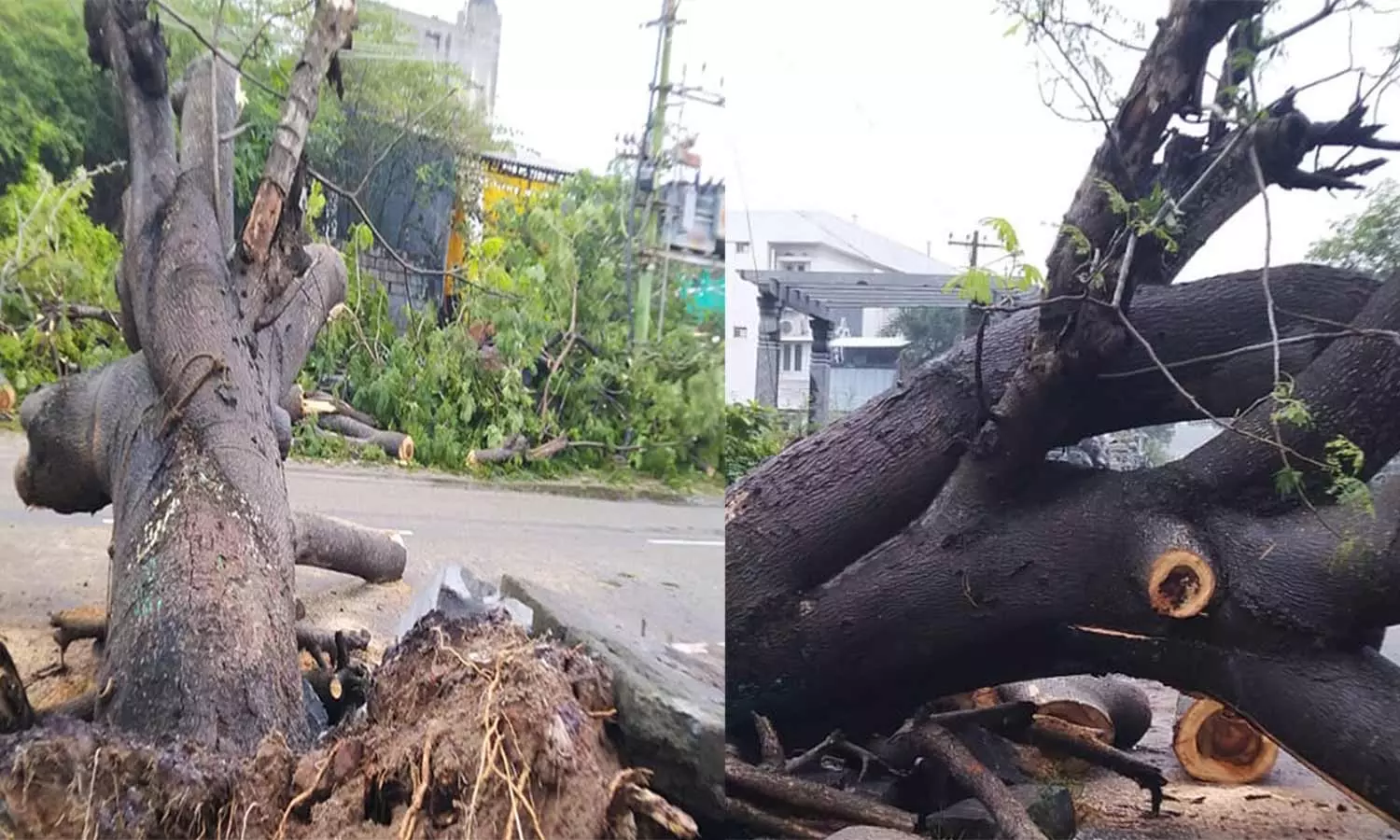 மாமல்லபுரத்தில் "கனமழை" வேரோடு சாய்ந்து விழுந்த காட்டு வாகை மரம்
