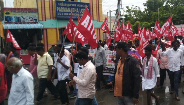 மாமல்லபுரத்தில் செங்கொடி பேரணி- தனியார், அரசுத்துறை தொழிலாளர்கள் பங்கேற்பு