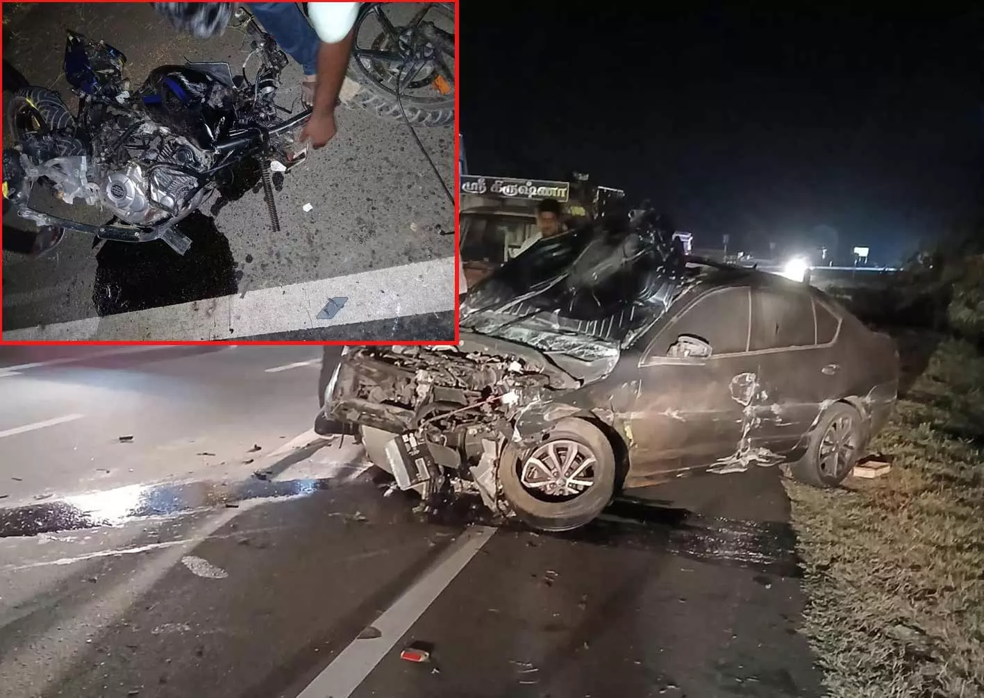 மோட்டார் சைக்கிள் மீது சொகுசு கார் மோதல்- 3 பேர் பலி