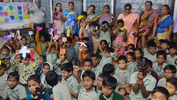 மாற்றுத்திறனாளி மாணவர்களிடையே நட்புறவை வளர்க்கும் விதமாக காகிதப் பறவை கலை நிகழ்வு