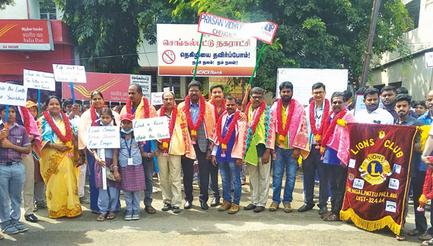 பன்னாட்டு லயன் சங்கம் மற்றும் செங்கல்பட்டு பல்லவாலயன் சங்கம் இணைந்து சாலை பாதுகாப்பு விழிப்புணர்வு பேரணி செங்கல்பட்டு தலைமை தபால் நிலையத்தில் இருந்து பழைய பஸ்நிலையம் வரை நடந்தது.