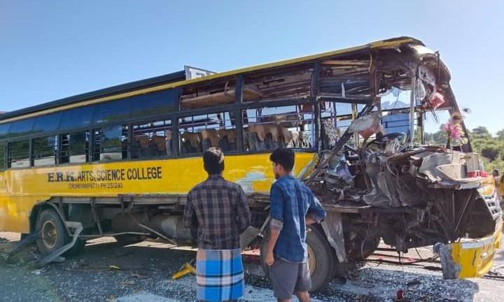 ஊத்தங்கரை அருகே பள்ளி, கல்லூரி பேருந்துகள் நேருக்கு நேர் மோதல்