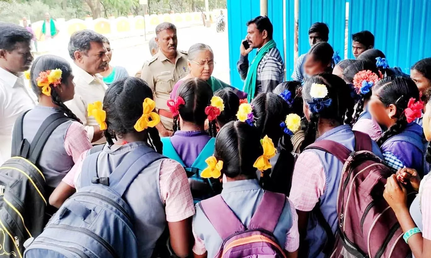 விருதுநகரில் முதன்மை கல்வி அலுவலகத்தை முற்றுகையிட்ட பள்ளி மாணவிகள்