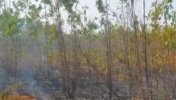 திருத்தணி அருகே தீ விபத்து- 10 ஏக்கர் தைலம் தோப்பு எரிந்து நாசம்