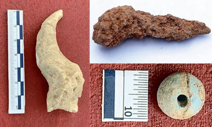 தொடர்ந்து தொல்லியல் துறை கண்காணிப்பாளர் காளிமுத்து மேற்பார்வையில் அகழ்வாய்வு பணி தொடர்ந்து நடைபெற்று வந்த நிலையில் அந்த பகுதியில் தோண்டப்பட்ட பள்ளத்தில் பழங்கால கட்டிட சுவர்கள் காணப்பட்டது. இதனை தொடர்ந்து அரியவகை பொருட்களான கண்ணாடி மணிகள், வட்ட சில்கள், இரும்பு பொருட்கள், கூர்மையான ஆயுதம் போன்ற பொருட்கள் கிடைத்துள்ளது. கிடைக்கப்பெற்ற பொருட்களை தொல்லியல் துறை கண்காணிப்பாளர் காளிமுத்து பார்வையிட்டார். அவருடன் தொல்லியல் துறை ஆய்வாளர் ரமேஷ் மற்றும் ஊழியர்கள் உடன் இருந்தனர்.