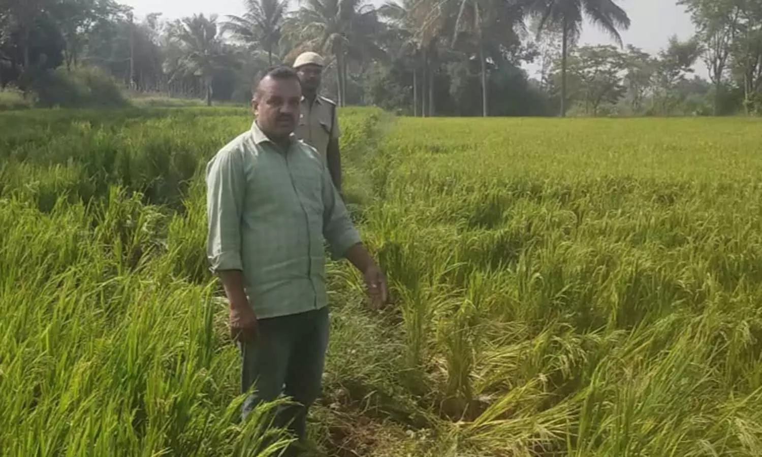 இதில் சிவக்குமார் என்பவரின் 2ஏக்கர் நெற்பயிர், கோவிந்தப்பாவின் 1ஏக்கர் நெற்பயிர், பாப்பண்ணா என்பவரின் 1 ஏக்கர் முட்டைகோஸ் ஆகியவற்றை காலில் மிதித்தும் தின்றும் நாசம் செய்து சென்றுள்ளன.