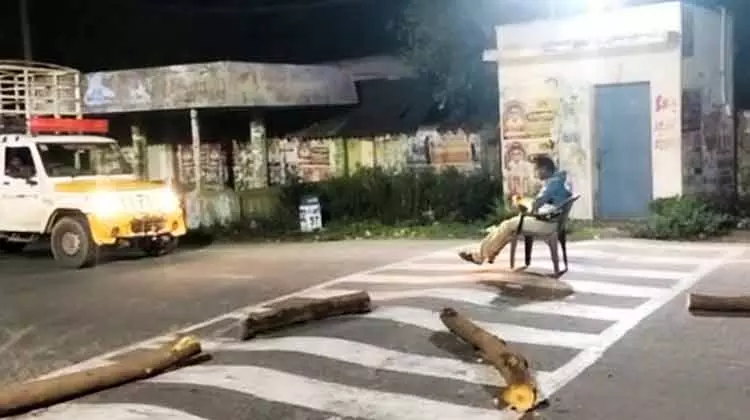போதை தலைக்கேறியதால் நள்ளிரவில் ரகளை- சாலையின் குறுக்கே மரங்களை போட்டு நாற்காலியில் அமர்ந்த வாலிபர்