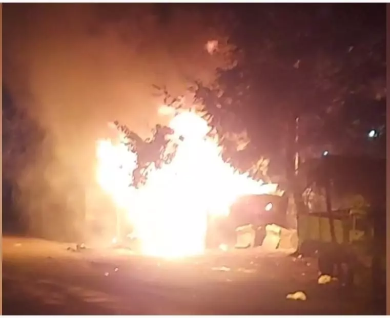 நள்ளிரவில் இவரது கடையில் இருந்து கரும்புகை வெளிவந்தது. சிறிது நேரத்தில் தீ பற்றி எரிந்தது.