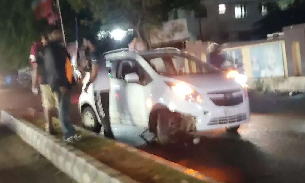 - நேற்று இரவு அந்த வழியாக வந்த ஒரு கார் திடீரென தடுப்பு சுவர் மீது மோதி கவிழ்ந்தது.