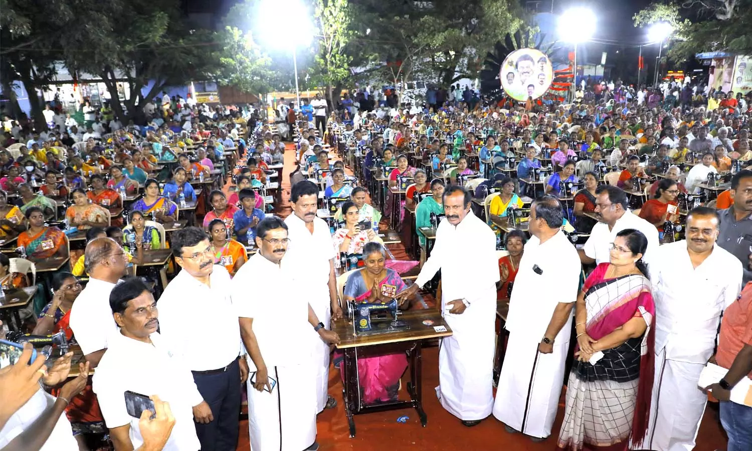 வீட்டுவசதி, நகர்புற வளர்ச்சி மற்றும் மதுவிலக்கு ஆயத்தீர்வை அமைச்சர் முத்துசாமி சிறப்பு விருந்தினராக கலந்து கொண்டு 4 ஆயிரம் பேருக்கு தையல் எந்திரம், இஸ்திரி பெட்டி, வேஷ்டி சேலைகள், பள்ளி குழந்தை–களுக்கு புத்தகப்பைகள் ஆகியவற்றை வழங்கினார்.