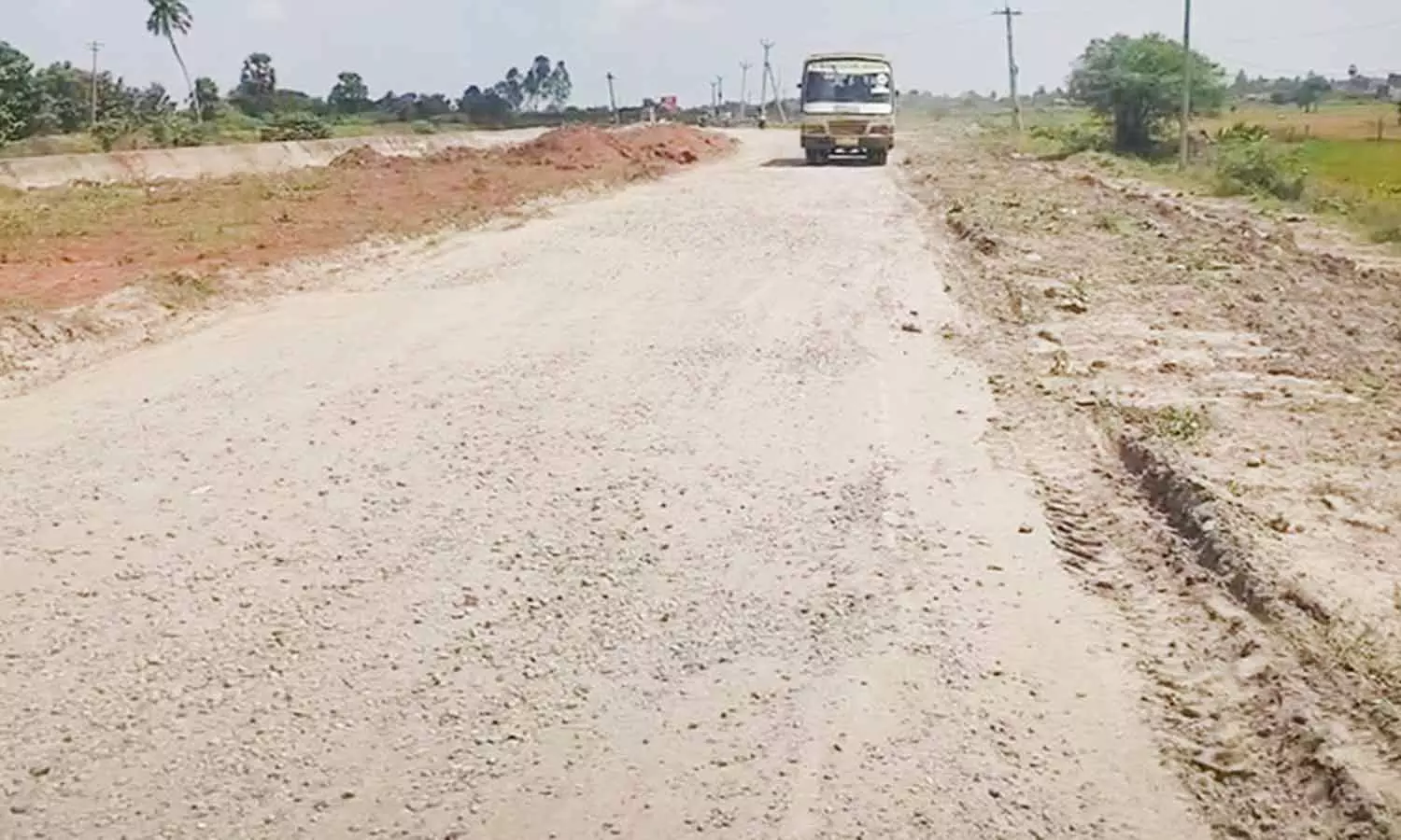 கப்பி கொட்டிய நிலையில் உள்ள சாலை.