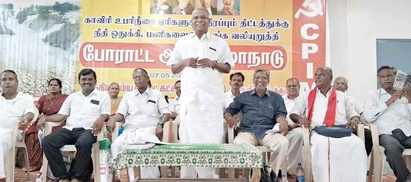 தருமபுரி மாவட்டத்தில் உள்ள ஏரி, குளங்களுக்கு காவிரி உபரி கொண்டு வரும் திட்டத்திற்கு நிதி ஒதுக்கீடு செய்து பணிகளைத் தொடங்க வலியுறுத்தி மார்க்சிஸ்ட் கம்யூனிஸ்டு கட்சி சார்பில் போராட்ட ஆயத்த மாநாடு தருமபுரி பெரியார் மன்றத்தில் நேற்று நடைபெற்றது.