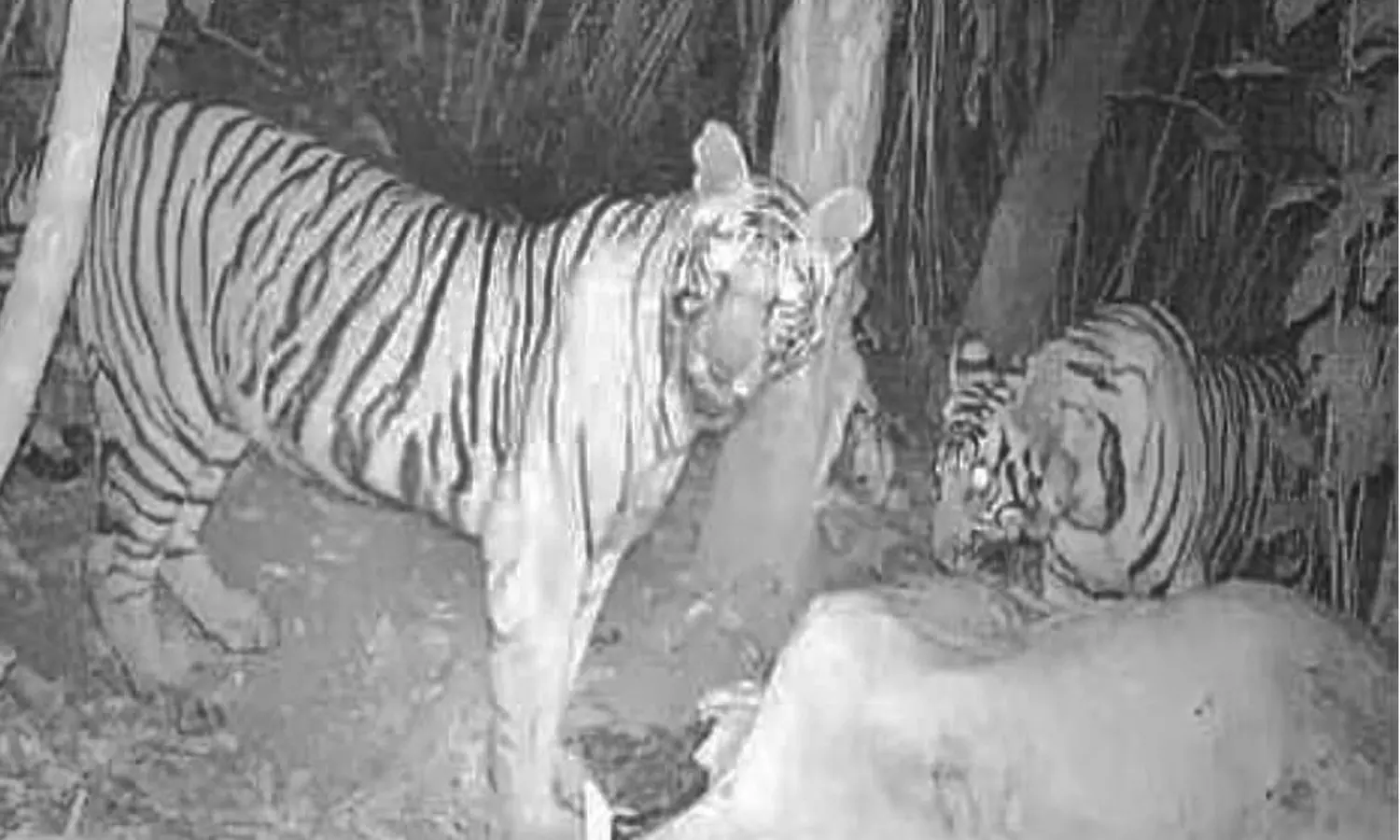 - அப்பகுதியில் இருந்த கண்காணிப்பு காமிரா பதிவுகளை ஆய்வு செய்தபோது 3 புலிகள் பசுவை கொன்று இழுத்து சென்றது பதிவாகி இருந்தது.