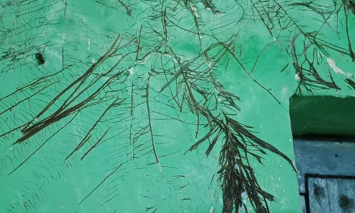 பள்ளி சுவற்றில் வேர்கள் துளைத்தும் காணப்படும் கட்டிடம்.