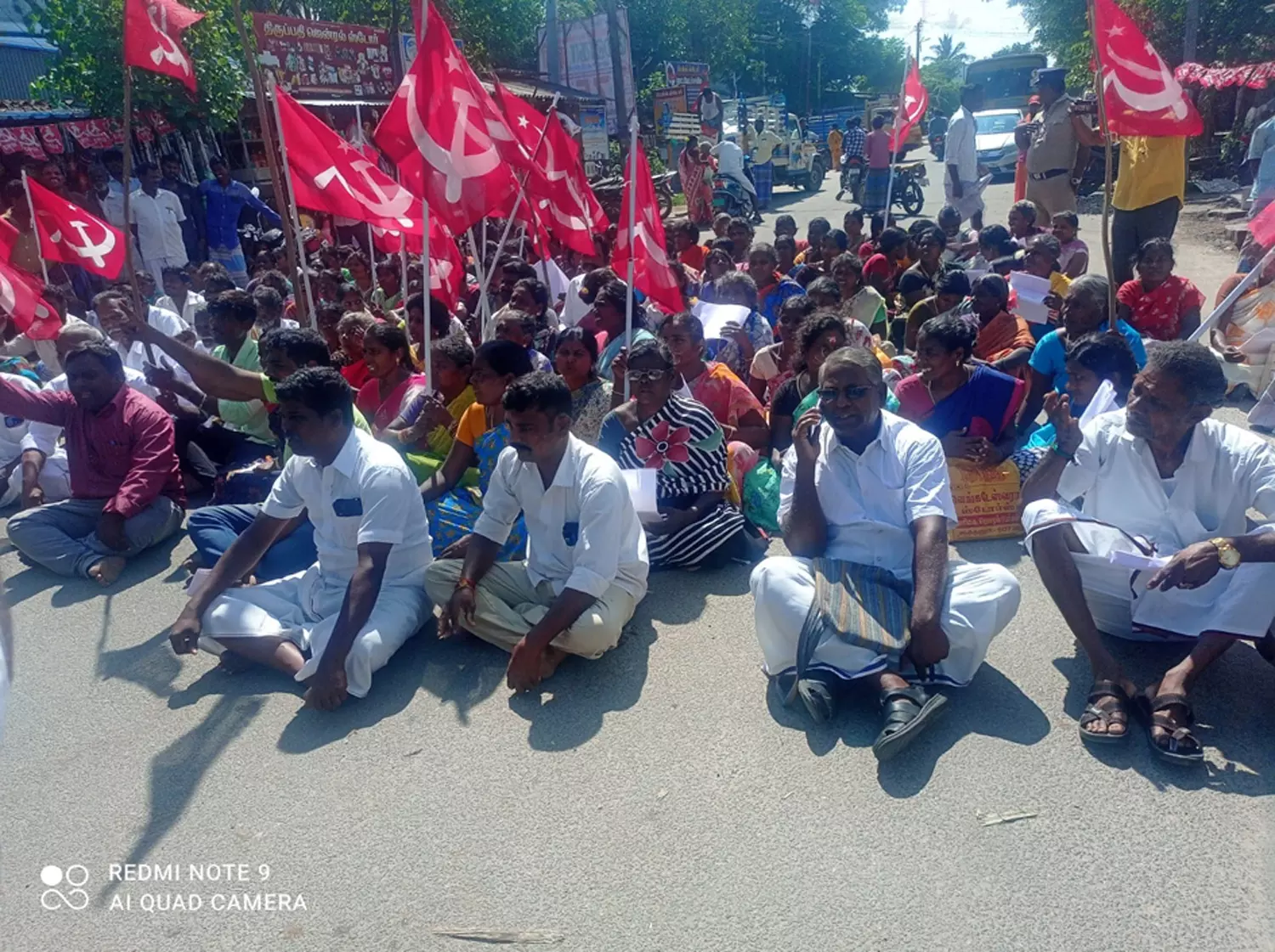 மார்க்சிஸ்டு கம்யூனிஸ்ட் கட்சியினர் சாலை மறியலில் ஈடுபட்ட காட்சி.