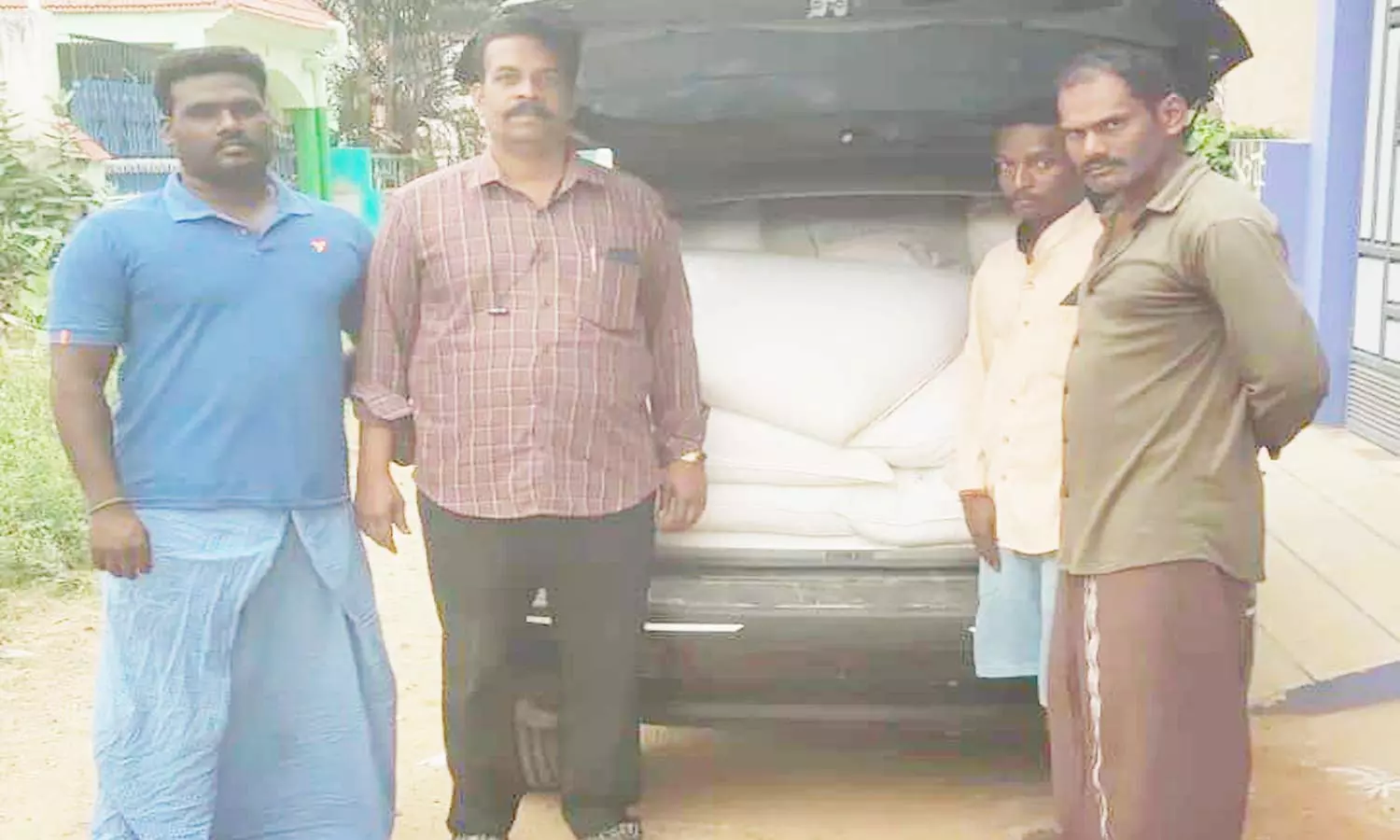பறிமுதல் செய்யப்பட்ட ரேசன் அரிசி.