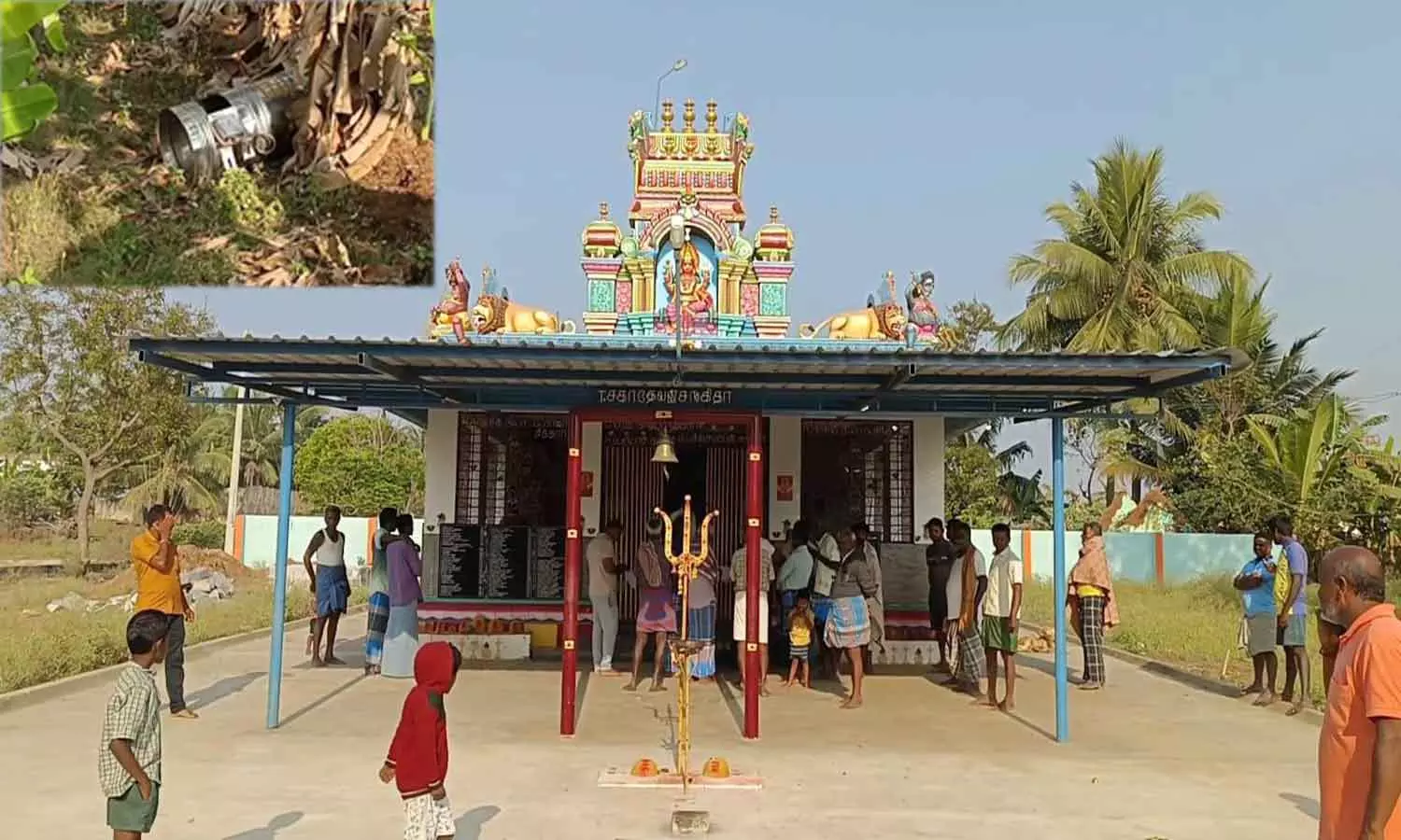 திருட்டுப் போன கோவில். கோவில் இருந்த உண்டியலை அருகில் வீசி சென்றிருப்பதை காணலாம்.