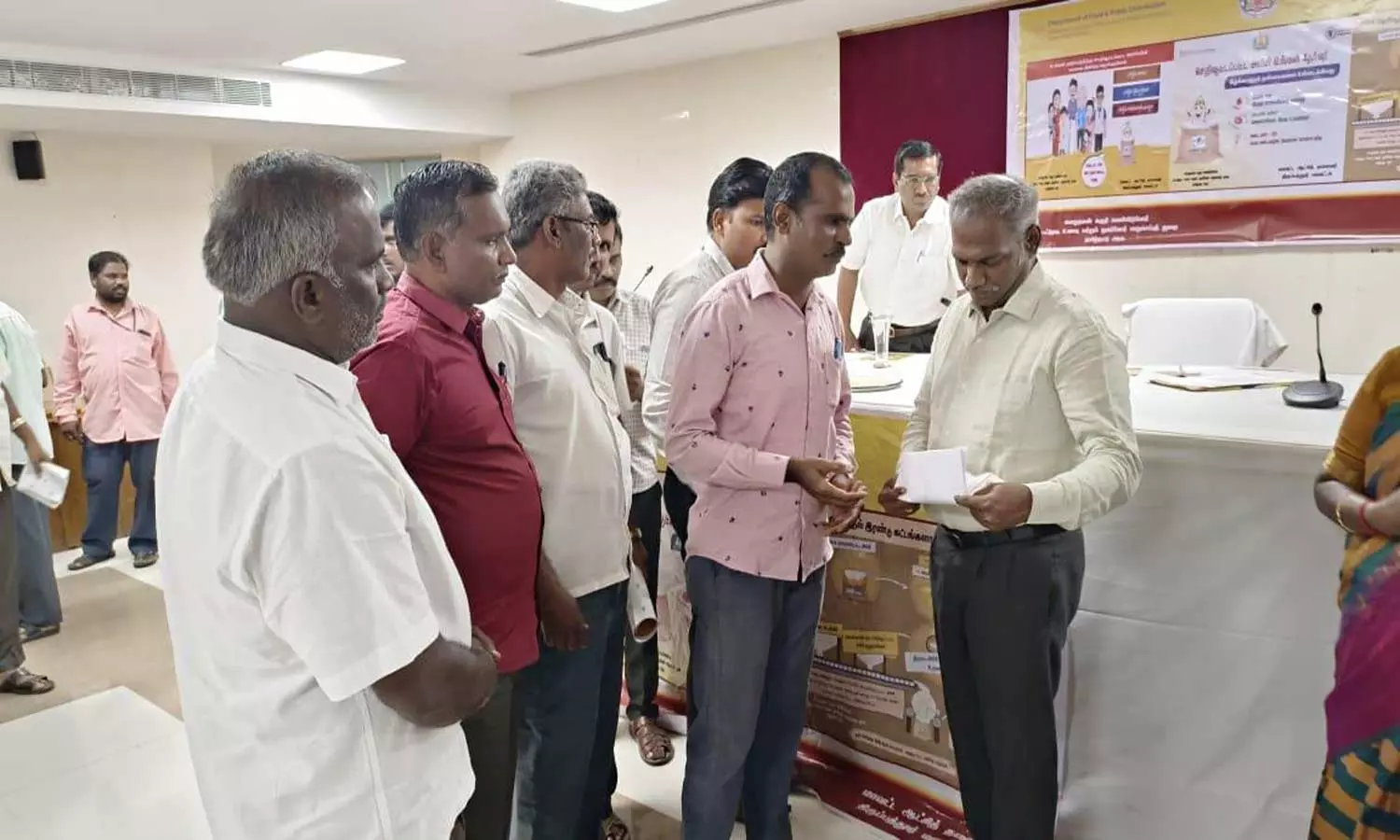 தமிழ்நாடு கூட்டுறவு ரேசன் கடை தொழிலாளர் முன்னேற்ற சங்கம் சார்பில் மாவட்ட செயலாளர் வி. சுரேஷ், மாவட்டத் தலைவர் ஜெயக்குமார், பொருளாளர் அருள் தலைமையில் கலெக்டர் தெ.பாஸ்கர பாண்டியனிடம் அளித்தனர்.
