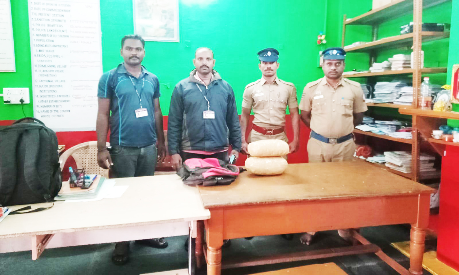 ரெயிலில் பறிமுதல் செய்யப்பட்ட 4 கிலோ கஞ்சாவை படத்தில் காணலாம்.