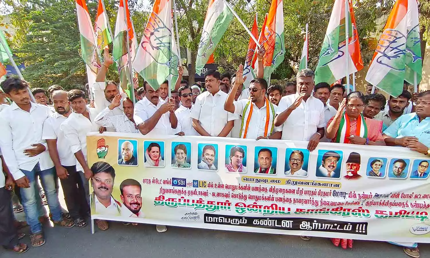 திருப்பத்தூர் ஒன்றிய காங்கிரஸ் கட்சி சார்பில் திருப்பத்தூரில் உள்ள ஸ்டேட் வங்கி முன்பு ஆர்ப்பாட்டம் நடை பெற்றது.