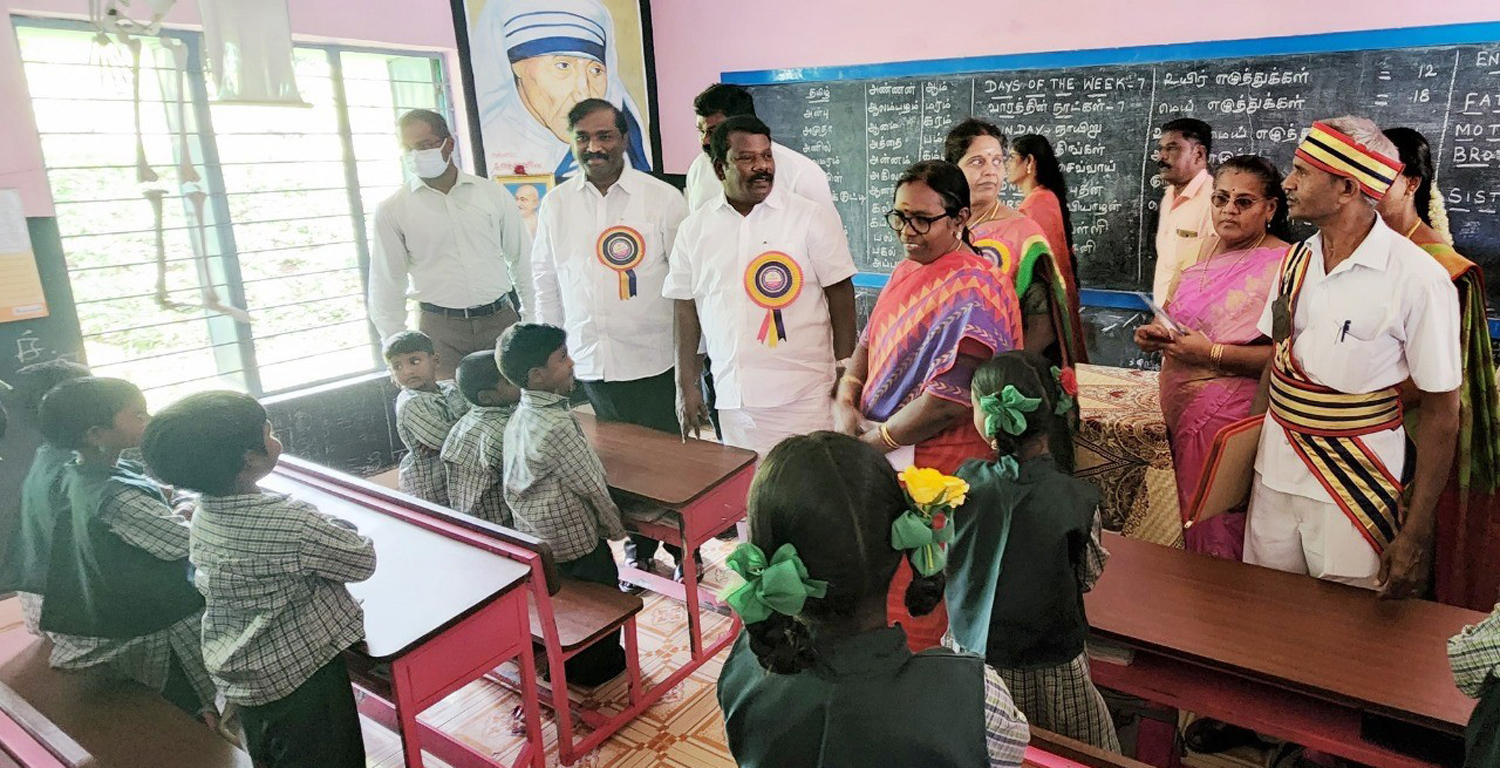 பள்ளியில் சட்டமன்ற குழு ஆய்வு செய்த காட்சி.